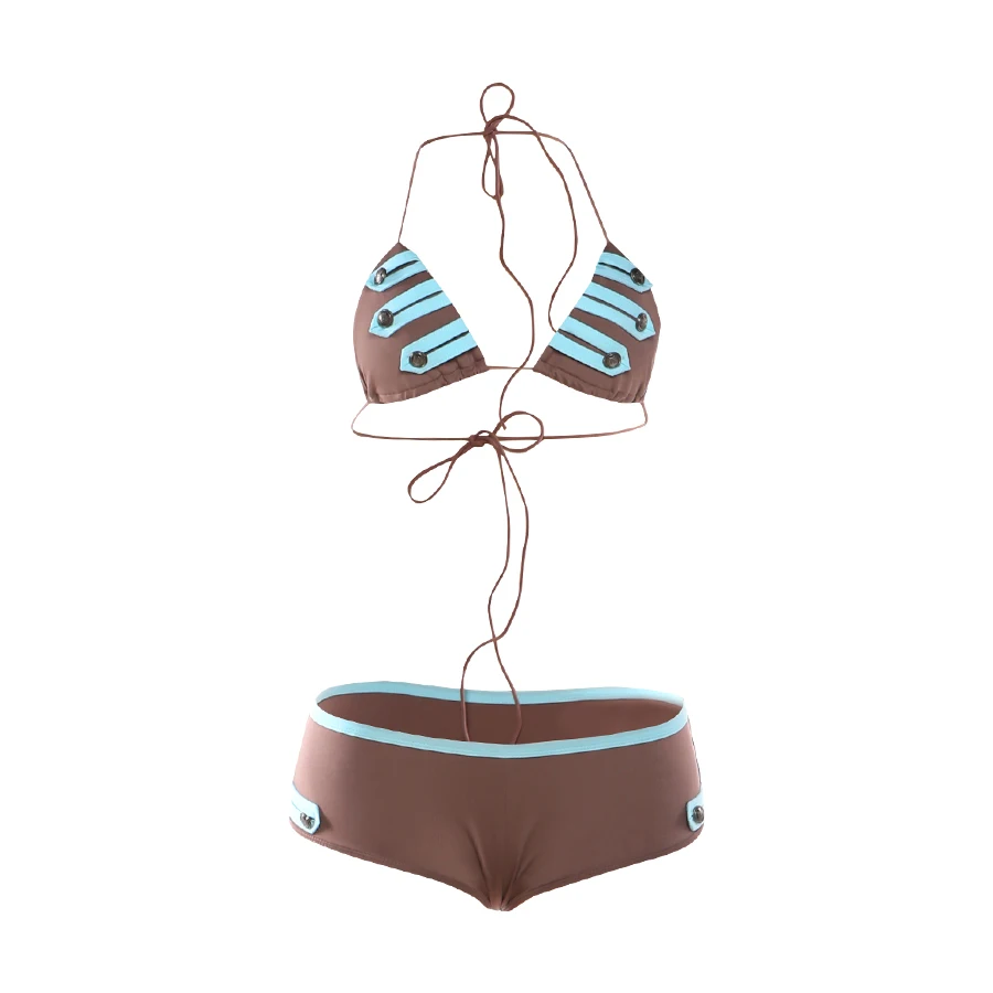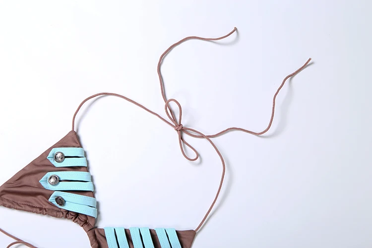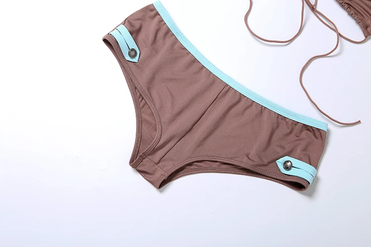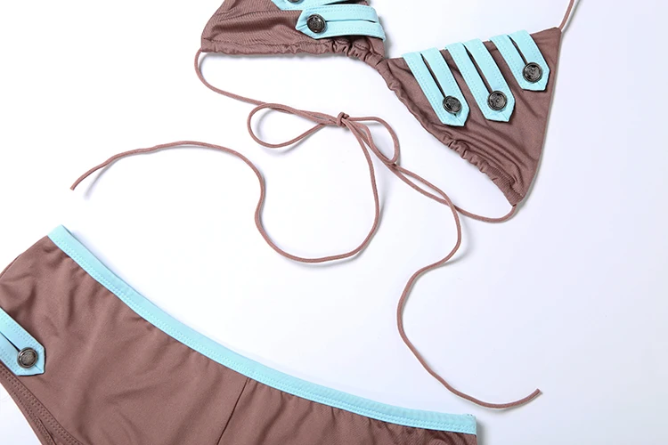 Kliou Metal Button 2 Piece Set Woman Lace-Up Halter Backless Bra Top+Elastic Waist Shorts Vacation Beach Party Style Bikini Suit quantity