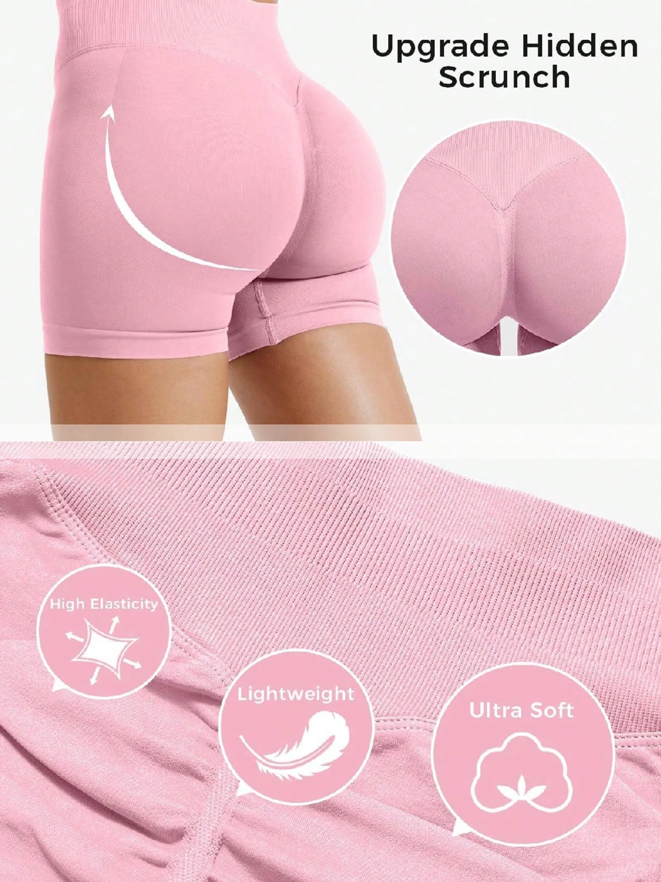 Product details page: High waisted casual sports shorts (available in multiple colors)