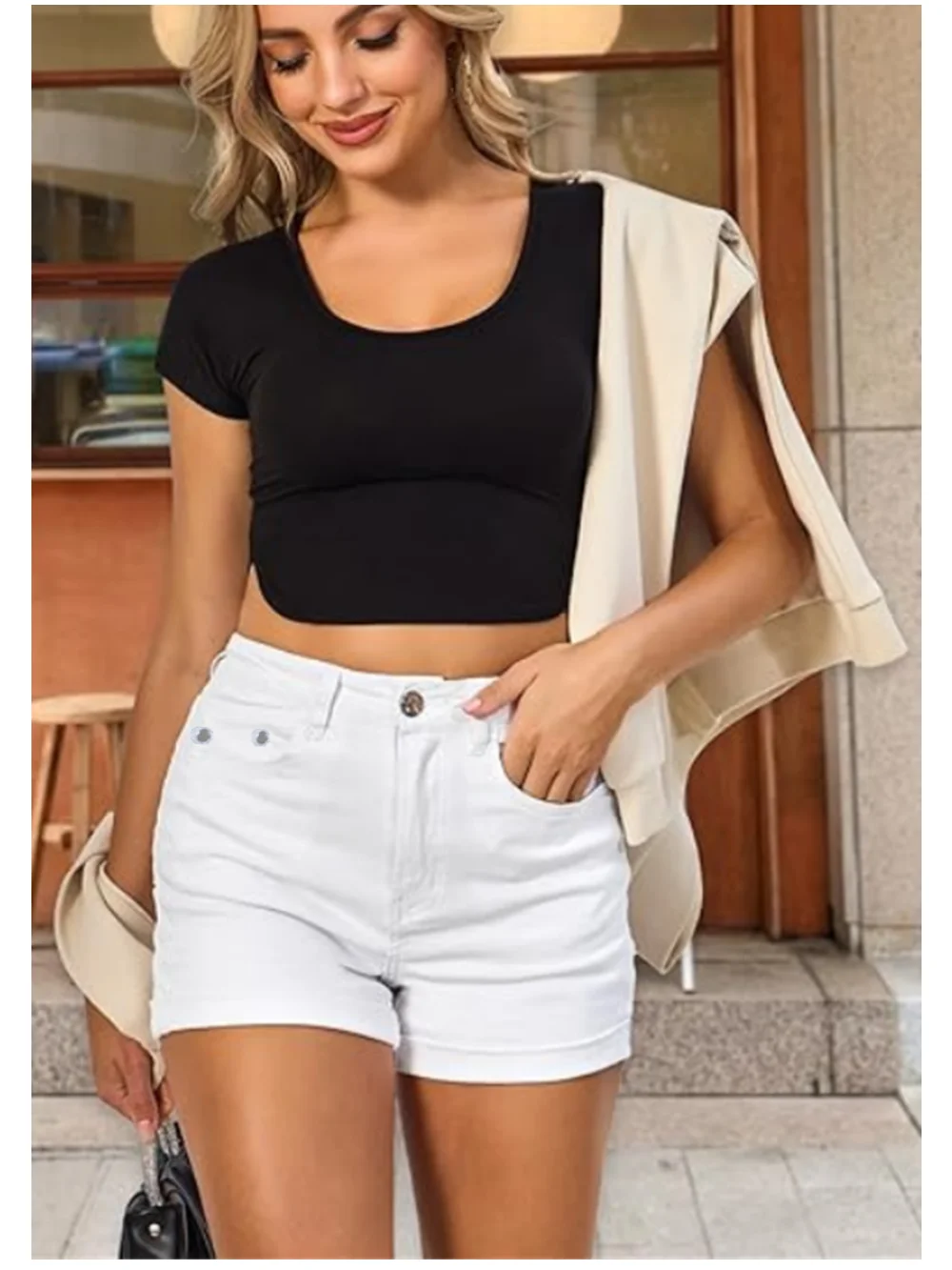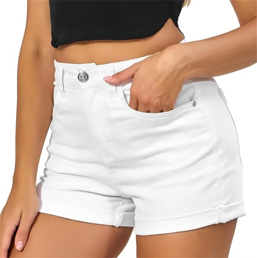 Women Color Short Pants Stretchy Comfy Skinny Denim Shorts Pants Button Front Casual Breathable Stretch High Rise quantity